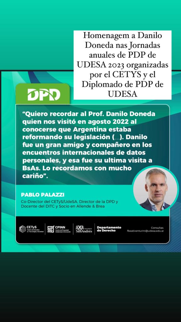 Danilo Doneda é homenageado nas Jornadas anuales de PDP de Universidad de SanAndrés UDESA, em Buenos Aires, Argentina, 2023 organizadas por el CTYS y el Diplomado de PDP de UDESA por Pablo Palazzi.